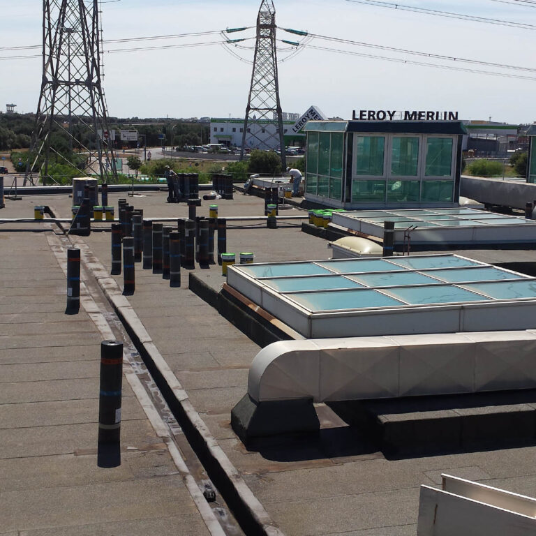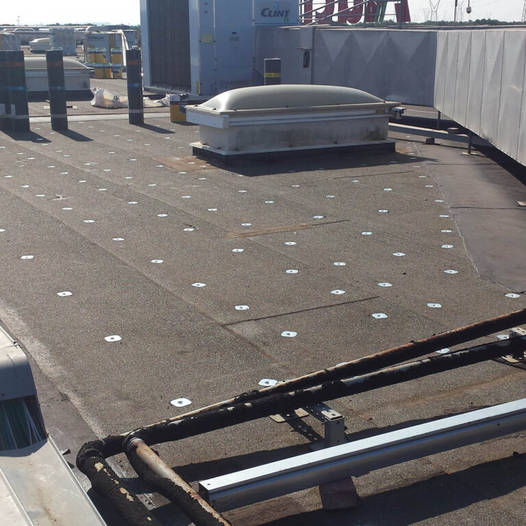 La catena francese Auschan Spa decide di affidare il rifacimento totale della copertura della galleria commerciale alla Imperos srl con l’applicazione di una membrana bituminosa denominata Derbigum SP FR, posata a freddo per mezzo di apposito collante in totale aderenza al pacchetto impermeabile esistente. Questa membrana garantisce un’ottima resistenza meccanica e un elevata resistenza ai raggi UV.
